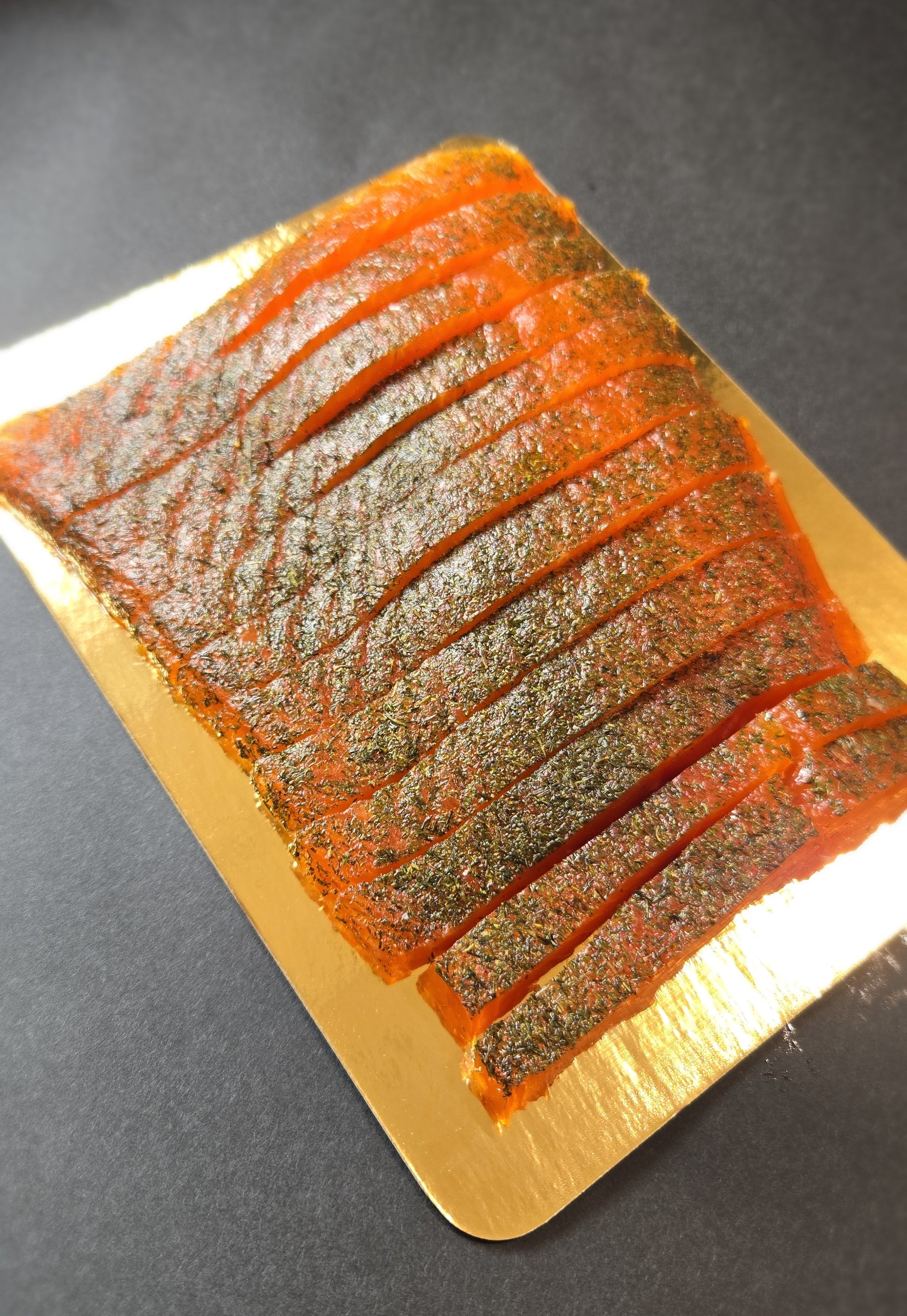 This Cold-smoked steelhead is carefully cured and gently smoked to bring out its rich, clean flavor. Skinless and sliced thickly in a charcuterie-style cut. It has a smooth texture and a mild, smoky taste. Perfect for serving on a charcuterie board with crackers, or as a light, savory snack!