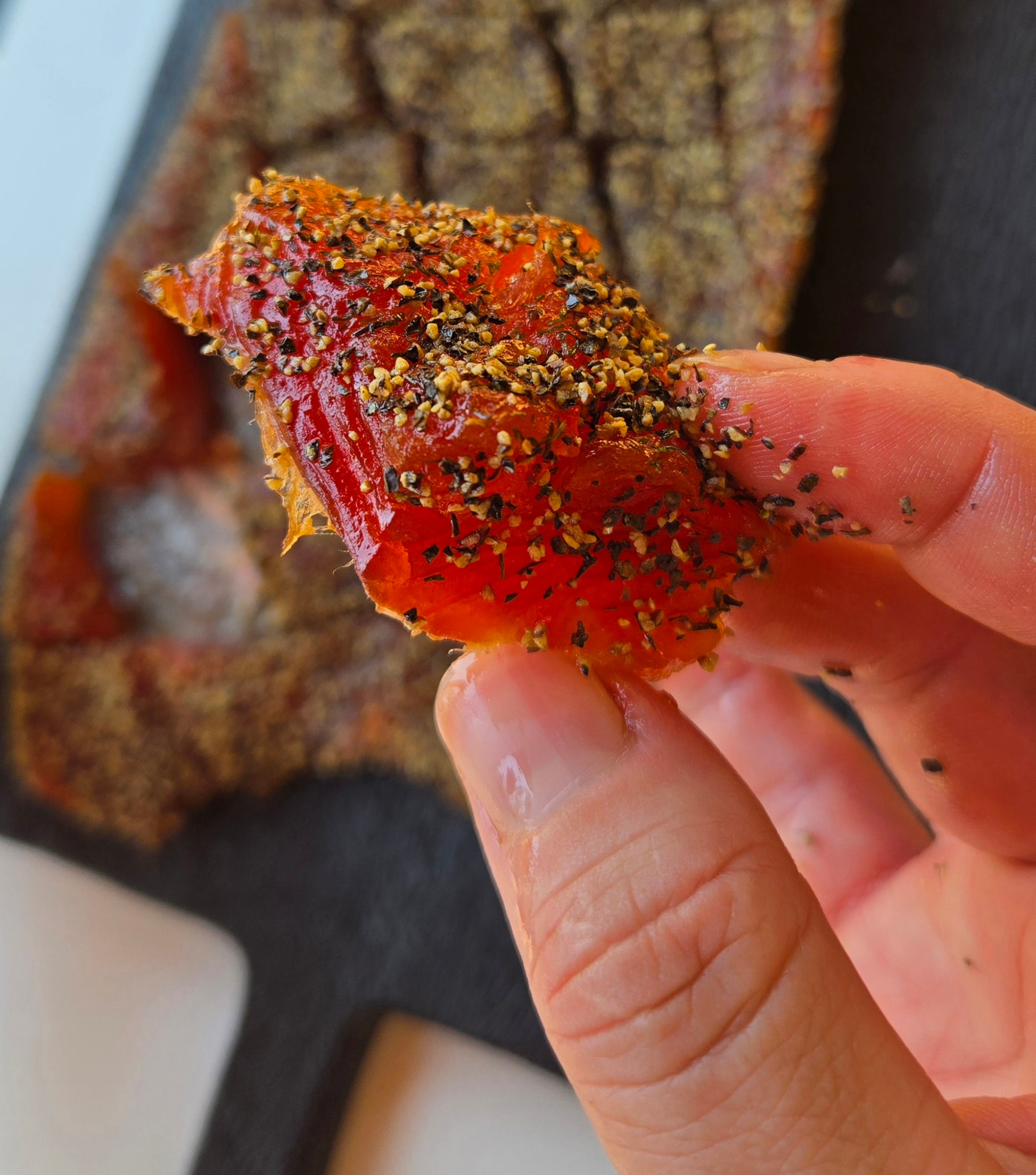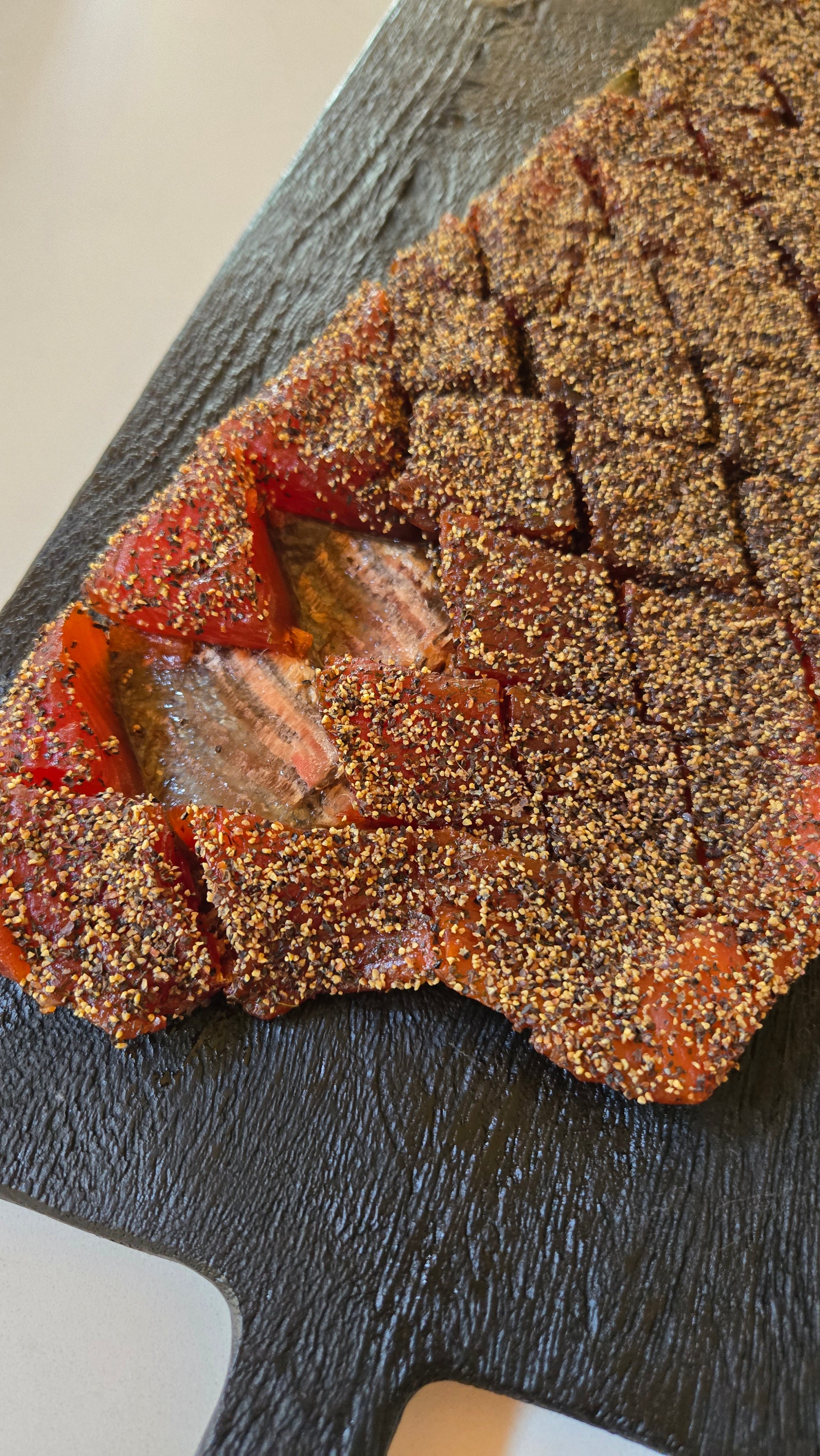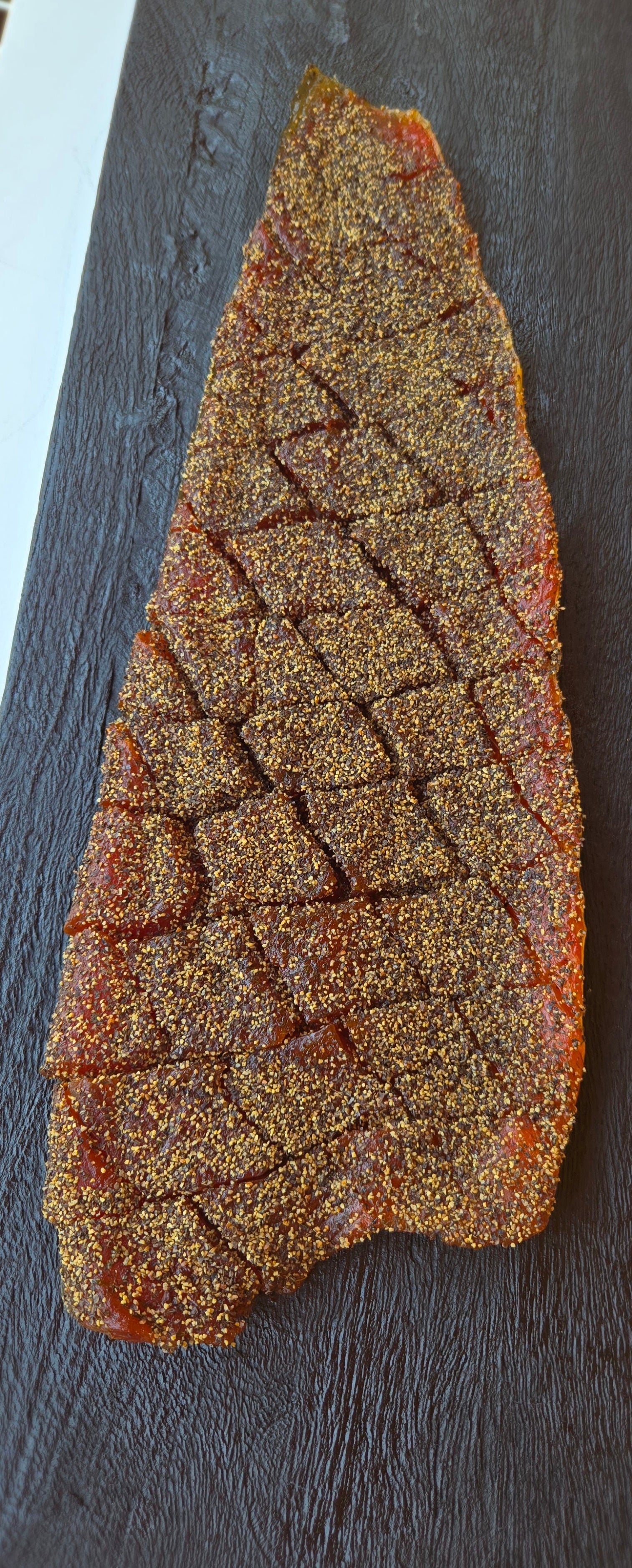 Savor the irresistible taste of Peppered Yukola Cold Smoked Steelhead, featuring perfectly salty and smoky bites seasoned with a bold peppered finish. Crafted for snacking, these flavorful pieces offer a satisfying combination of rich smokiness and savory saltiness that will keep you coming back for more. Treat yourself to a premium snack that delivers both taste and quality in every bite.